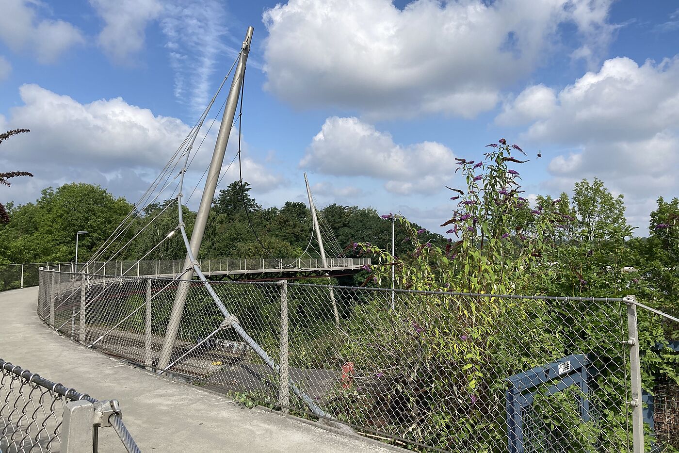 Gerlinde führte uns am Bochumer Schauspielhaus vorbei und über ein Stück des dort neu ausgebauten Radschnellwegs 1 (RS1), der einst von Duisburg nach Hamm führen soll, zum Westpark mit der Jahrhunderthalle, wo wir einen Blick auf die Vorbereitungen zum Kulturereignis der Ruhrtriennale erhaschen konnten. Über die eindrucksvolle Erzbahn-Schwinge ging es über die Erzbahntrasse zu Holgers Erzbahnbude, die leider wegen des unsicheren Wetters geschlossen hatte.