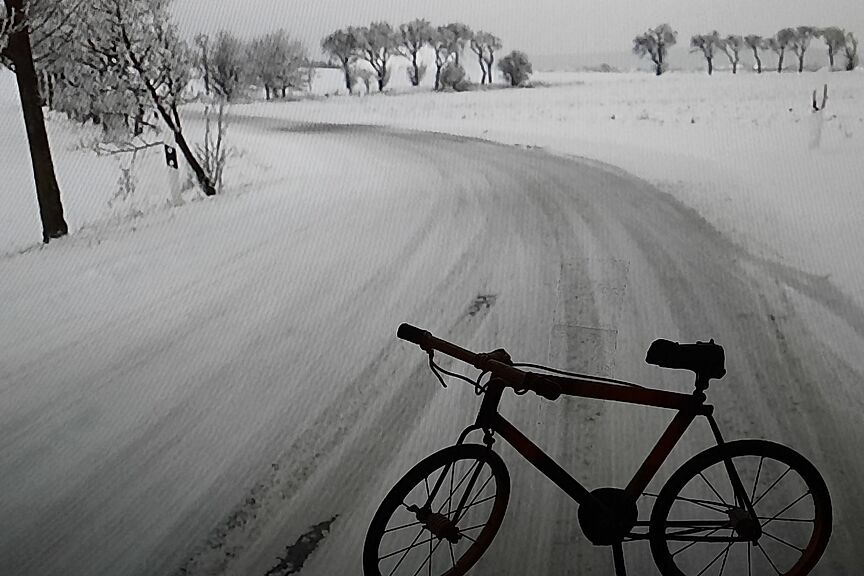Bei meiner Ankunft macht Benno gerade seinen Airbus startklar. So nenne ich sein Pedelec, weil er stets dessen Lenker mit allerlei elektronischem Gerät zwecks Navigation, Action- Videoaufzeichnung und Kommunikation bestückt und ihn somit in ein beeindruckendes Cockpit verwandelt. Benno ist stark gefordert, deshalb gehen wir die Checkliste wie gewohnt gemeinsam durch: Akku am Rahmen, Ersatz-Akkus für´s Navi, Handschuhe, Bordwerkzeug, Verpflegung? Letztlich kommt es zum Rollout aus der Einfahrt, wir brechen auf.