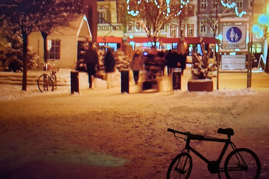 Nicht umsonst vergleiche ich die Tour mit einem Wellenritt. Der wunderschön durch den Wald verlaufende Baronweg bringt uns mit Tempo talwärts. Er trifft unten auf die Straße Entenpfuhl und steigt über den Kugelsberger Weg wieder zur Bergstraße hin an. Links liegt eine Weihnachtsbaumplantage. Sie bringt uns ob der prächtig gewachsenen Bäumchen ins Schwärmen und in einen Austausch zum Stand der Weihnachtsvorbereitungen, als der Weg plötzlich für 400 Meter von Asphalt zu feuchtem Waldboden wechselt. Man muss wissen, dass HaPe im Vorfeld um eine matsch- und rutschfreie Tour ersucht hatte. Mit schlechtem Gewissen drossele ich das Tempo und erwarte eine umgehend verbalerzieherische Maßnahme, während Benno links an mir vorbeischießt. Sie bleibt aus. Ich atme tief durch: Ein frühes Weihnachtsgeschenk von HaPe?