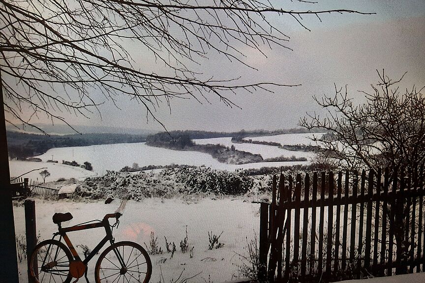Folgte die Strecke bislang dem Verlauf der Rur, verlasse ich diese nun nach Südwesten in Richtung Heinsberg, genieße das kurze Stück Premium- Asphalt und wende mich nach rechts in einen teilweise schlammigen Feldweg. Gerade überlege ich, ob es keine Alternative dazu gibt, höre ich von links hinten kollektives Gemuhe. Ein kurzer Blick und ich sehe es nahen. Zuerst noch verhalten, dann aber beängstigend schnell, galoppiert eine Herde Kühe (ein Bulle ist auch dabei) unaufhaltsam in meine Richtung. Mit Turbo- Boost und hohem Puls suche ich das Weite, die letzten 20 Meter ging´s parallel mit der Herde auf beiden Seiten des Zauns voran. Was war das denn? Wahrscheinlich hätte ich meinen Puls in diesem Moment auch mit Skihandschuhen fühlen können! Übrigens: Ich habe die Alternative gefunden und die Strecke adrenalinmindernd gestaltet (Komoot, WP 15).